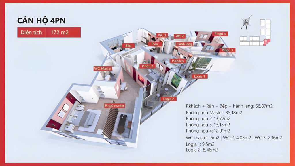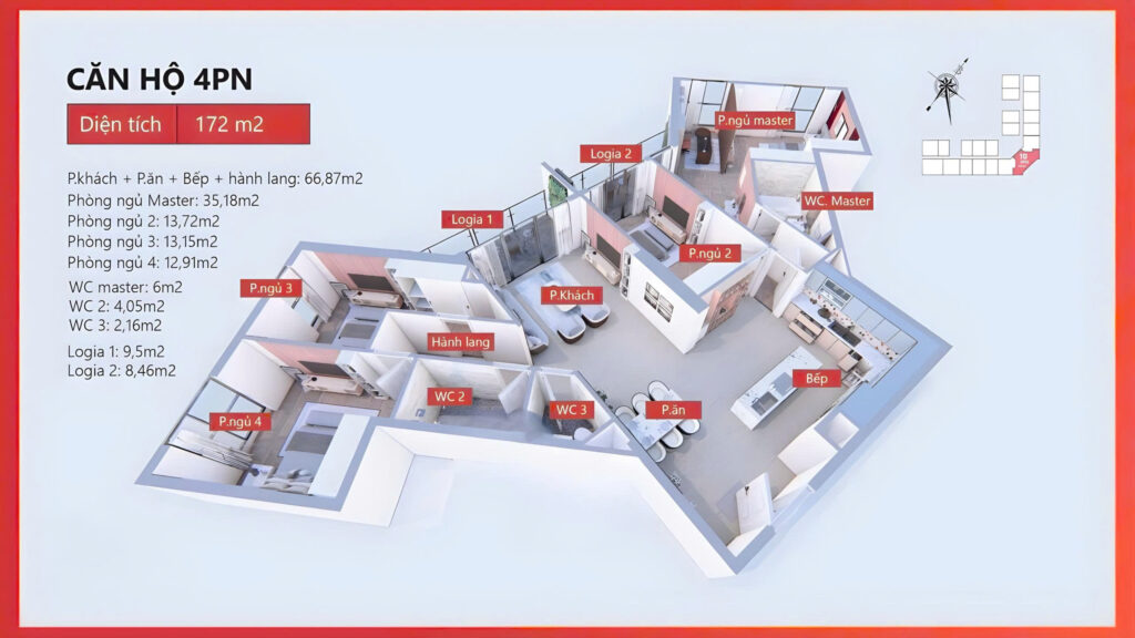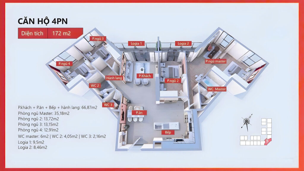 - Thiết kế chung cư: cao 42 tầng, 3 tầng hầm, tầng 6 – 29 là các căn hộ loại 2PN đến 4PN, tầng 30 – 42 là các căn hộ dòng SkyVillas diện tích lớn.